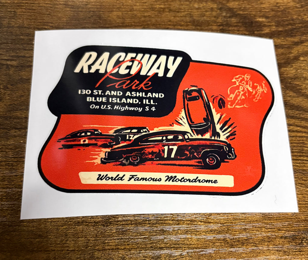 Raceway Park Vintage Style DECAL, Vinyl STICKER, racing, hot rod, rat rod
